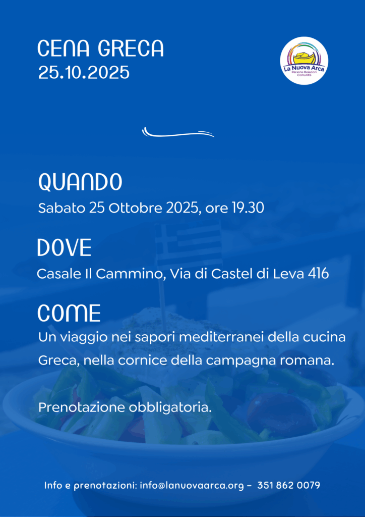 Come ogni nostro evento, anche la Cena Greca sostiene le attività di inclusione sociale e lavorativa che sono al cuore della missione de La Nuova Arca: clicca qui per saperne di più.