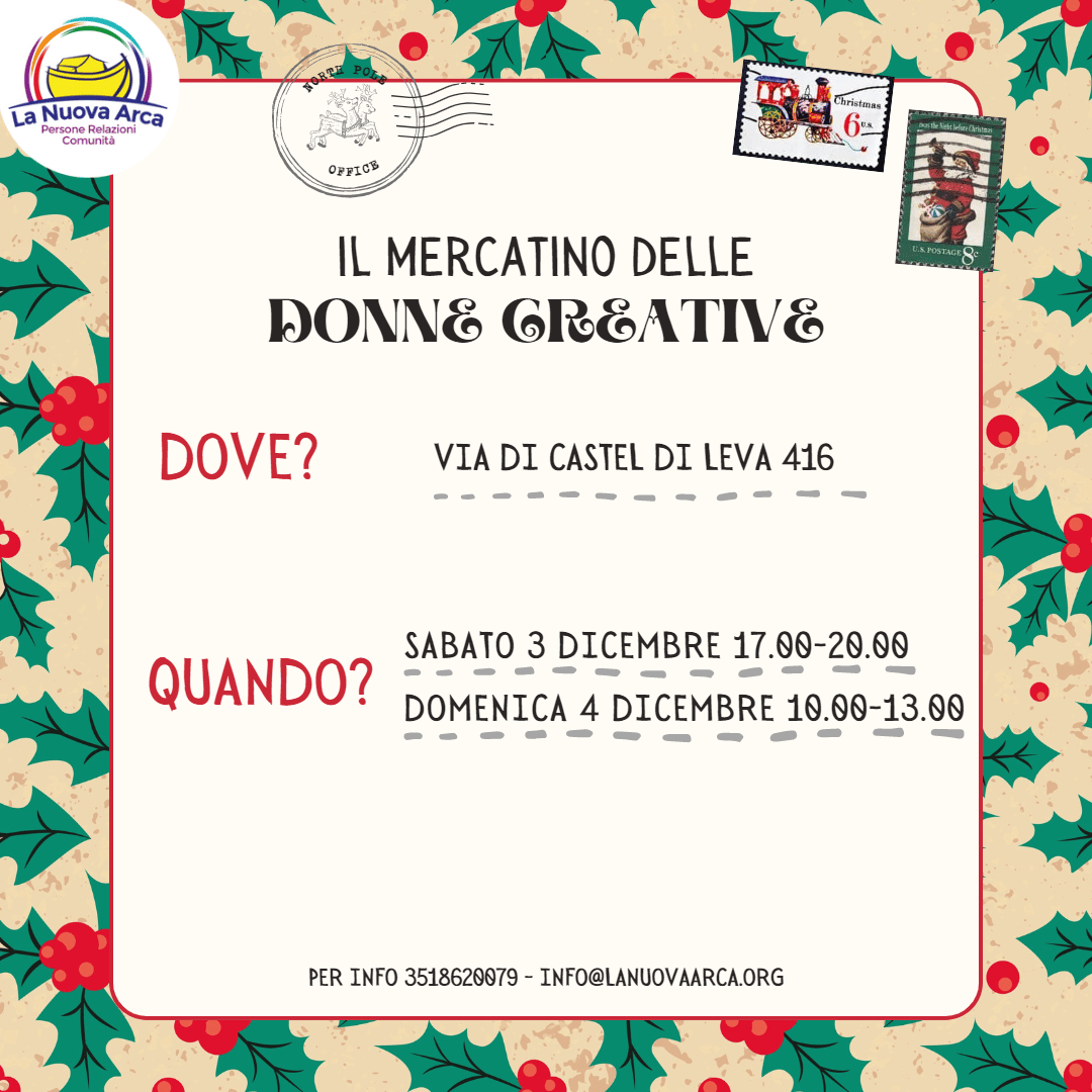 Domenica 4 Dicembre dalle 10.00 alle 13.00, presso la sede de La Nuova Arca in Via di Castel di Leva 416.