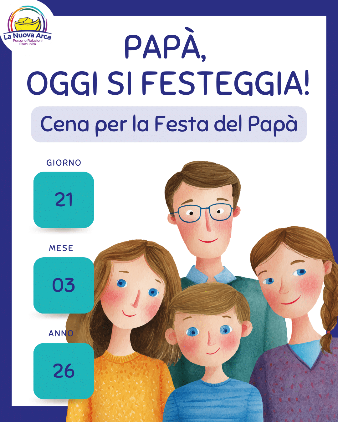 Per la festa del papà, La Nuova Arca propone un pomeriggio di Laboratorio di Cucina e Cena da condividere con tutta la famiglia!