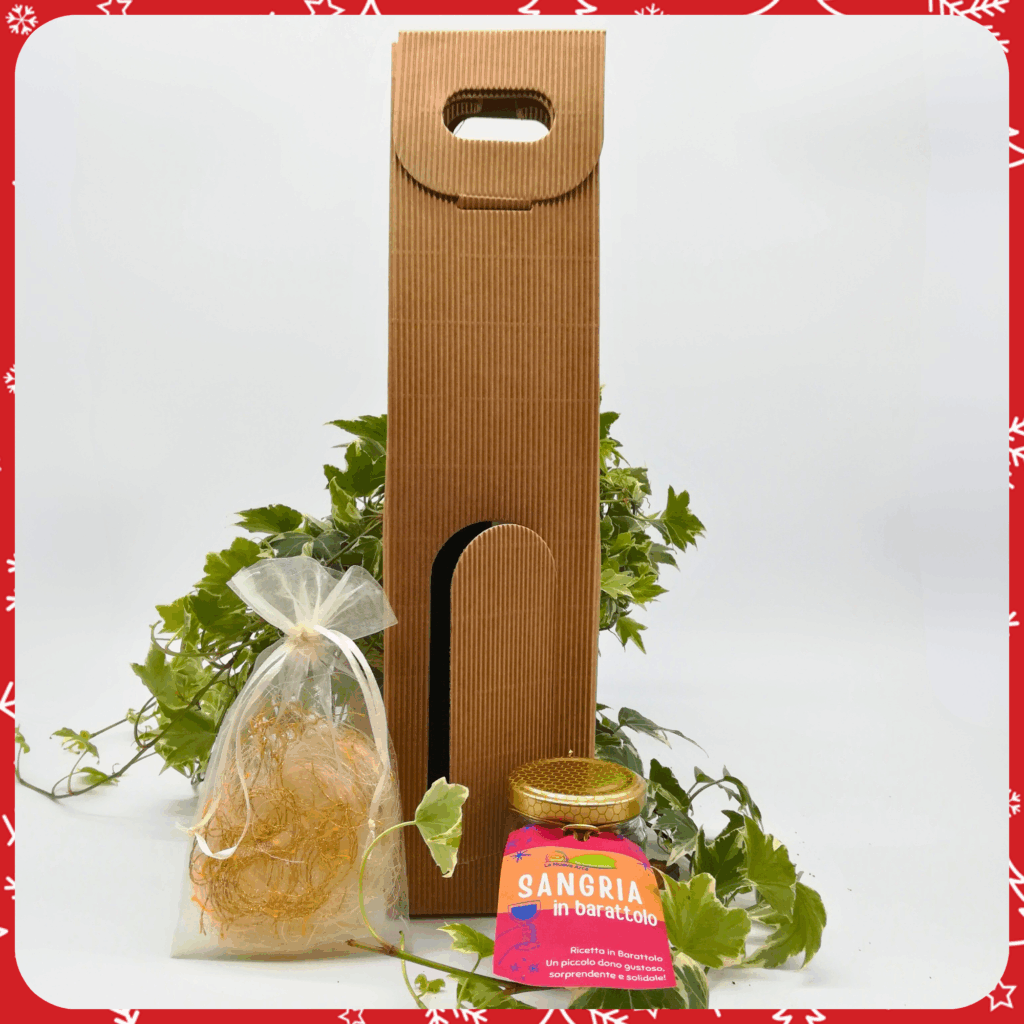 Ricetta in Barattolo – Sangria, dose per 1/2 litro di vino. Il Barattolo contiene zucchero di canna, mele essiccate, albicocche essiccate, mirtilli essiccati, stecca di cannella, chiodi di garofano.